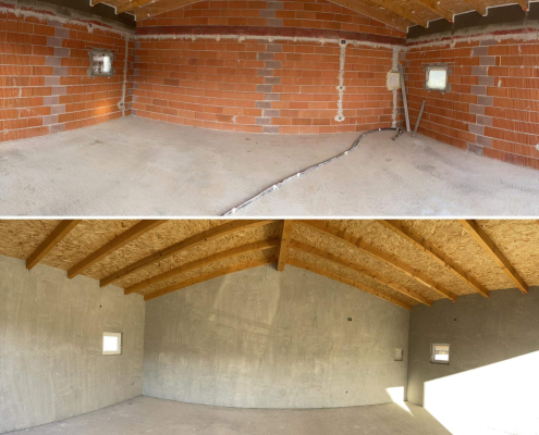 Nudimo Vam kompletnu uslugu strojnog žbukanja (unutarnjeg i vanjskog) izvedenu po tehničkim uputama proizvođača i pratećim europskim normama. Strojno žbukanje izvodimo na više načina i sa više vrsta gotovih žbuka.